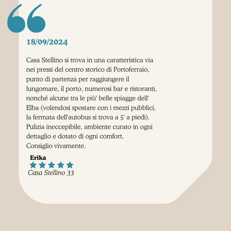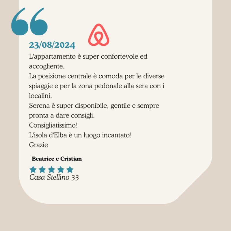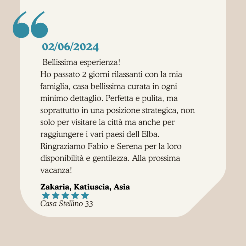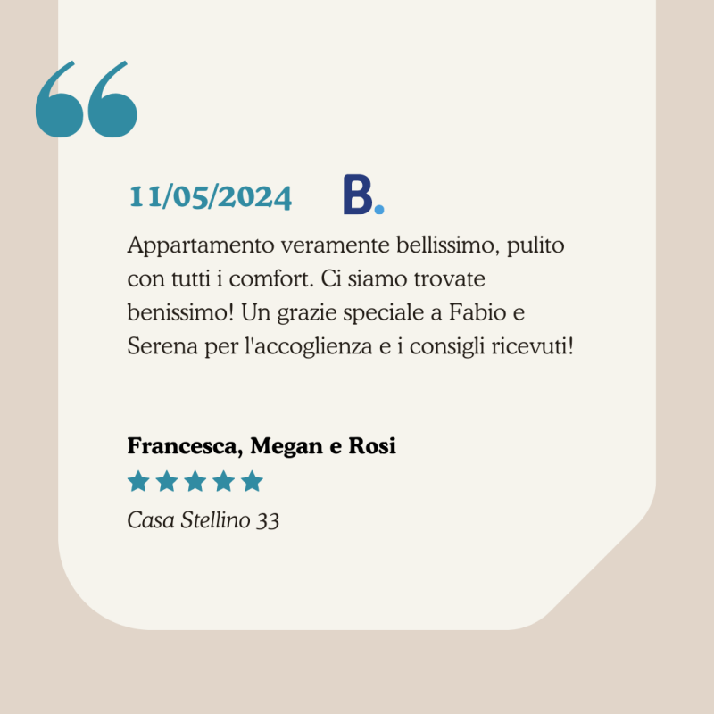 Le loro parole raccontano storie di relax, avventura e connessioni autentiche, riflettendo la passione che mettiamo in ogni dettaglio. Scopri come il comfort, la cura del dettaglio e l'attenzione ai desideri dei nostri ospiti rendano ogni soggiorno un'esperienza speciale. Ogni opinione è per noi una preziosa occasione per migliorare e continuare a superare le aspettative.